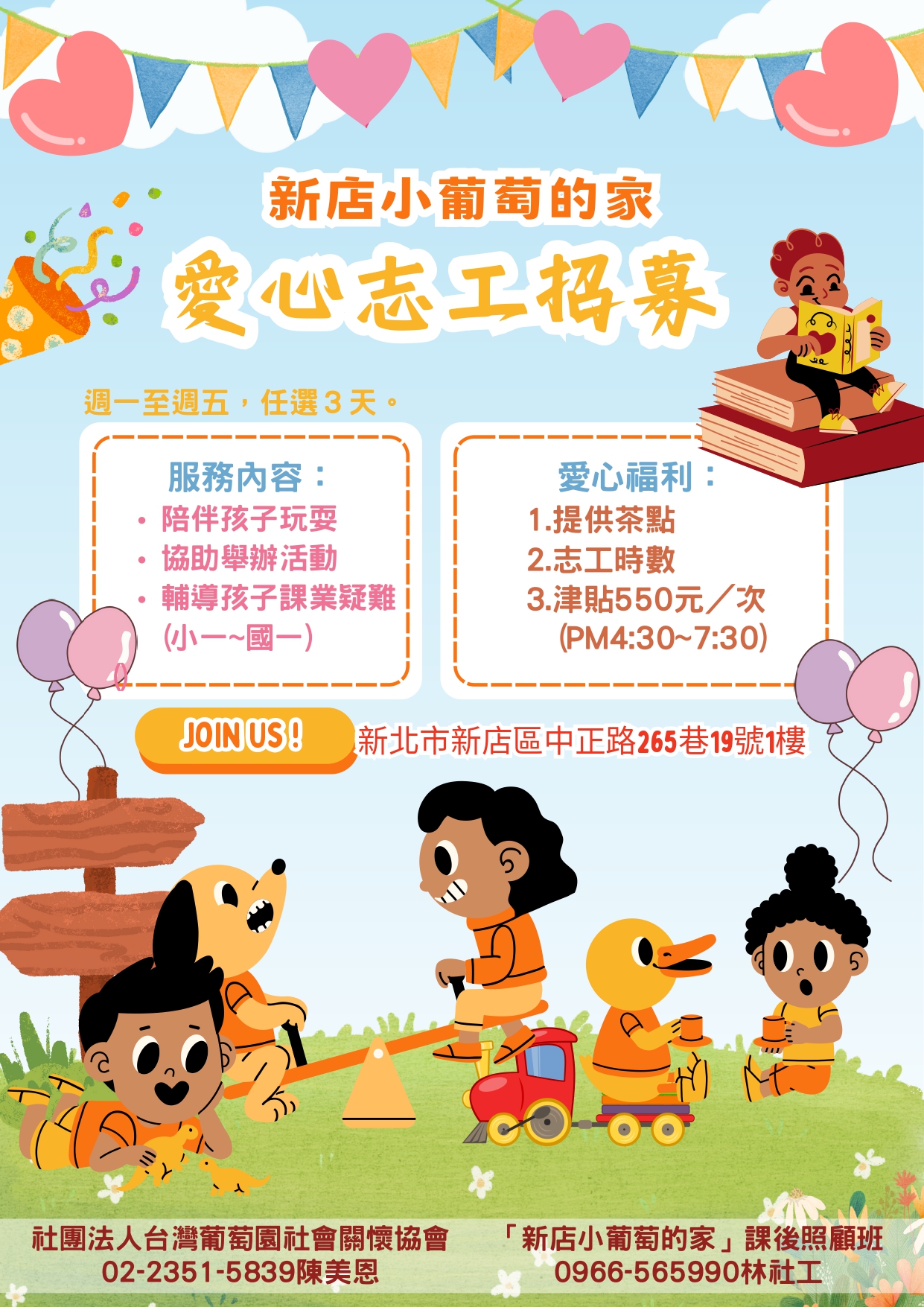 「新店小葡萄的家」課後照顧班愛心志工招募~